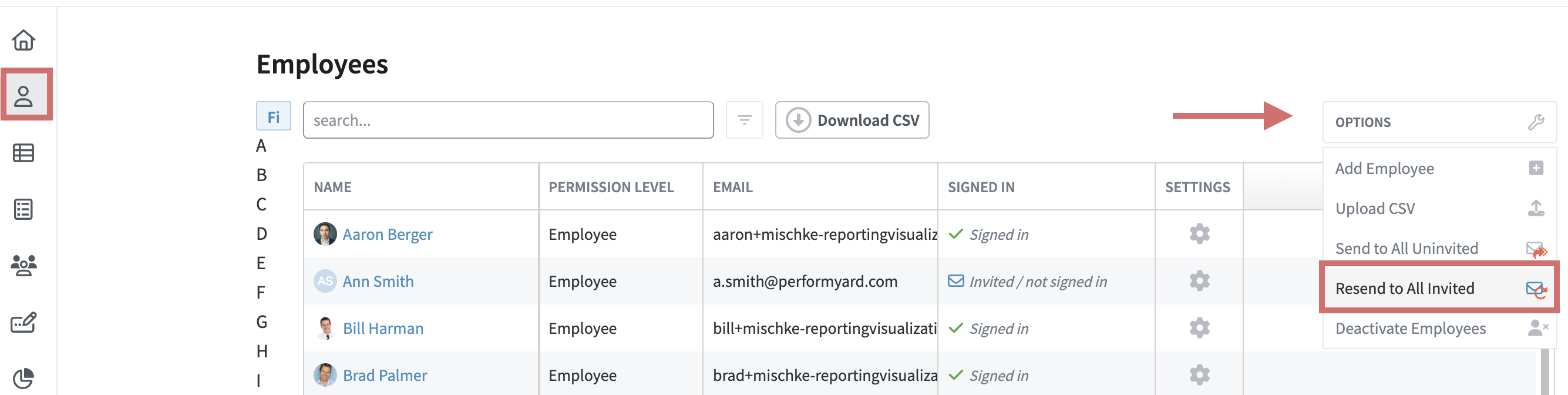 If you have employees who were invited but haven't logged in yet, you can send them a reminder.