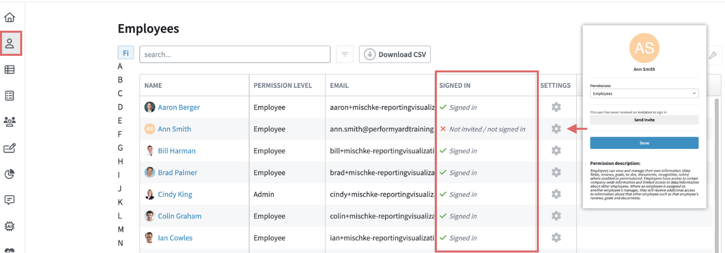 Tip: You can see who has logged in by looking at the Signed In column in your employee list.