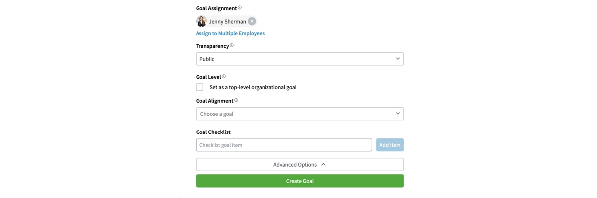 Private Goal Alignment: Premium customers can align Private goals to other goals while maintaining confidentiality. When enabled, the alignment selector will include goals you own, goals shared with you, and all Public goals. See the Private Goal Alignment (Premium) support article for further details.